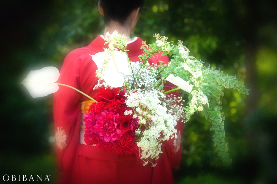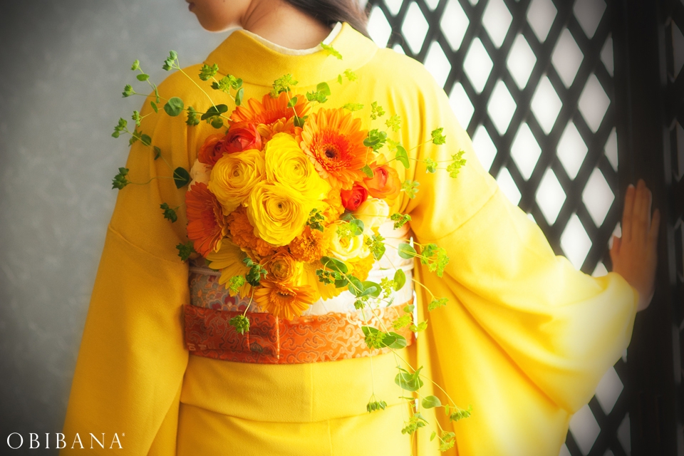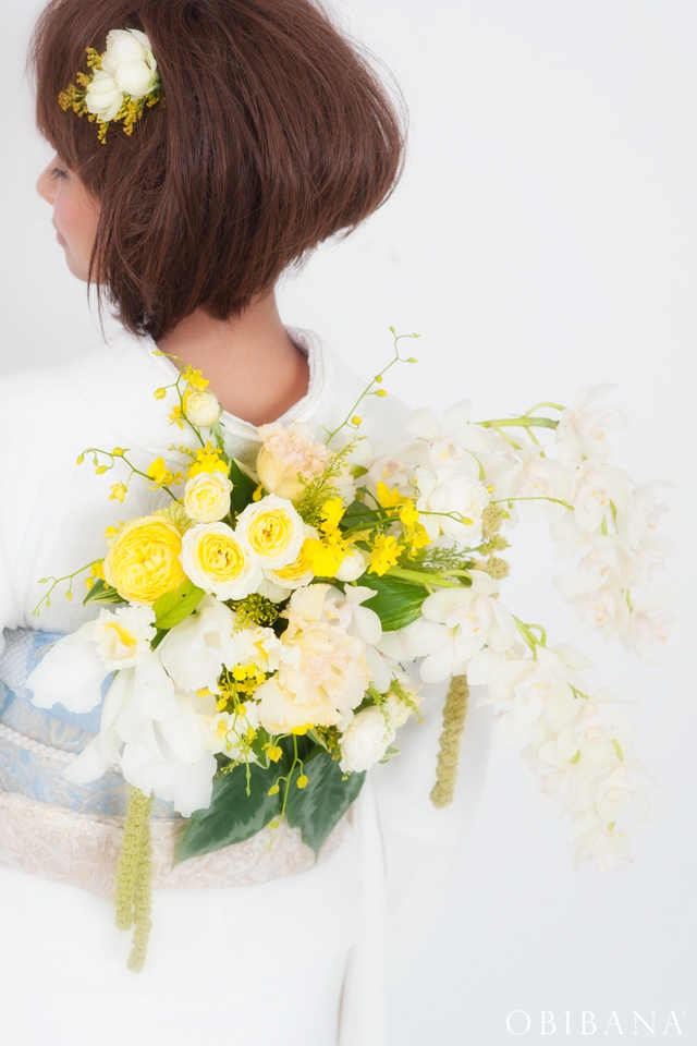 海野真司プロデュースの「帯花」はウエディングはもちろん様々なパーティーシーンに彩りを添えます。