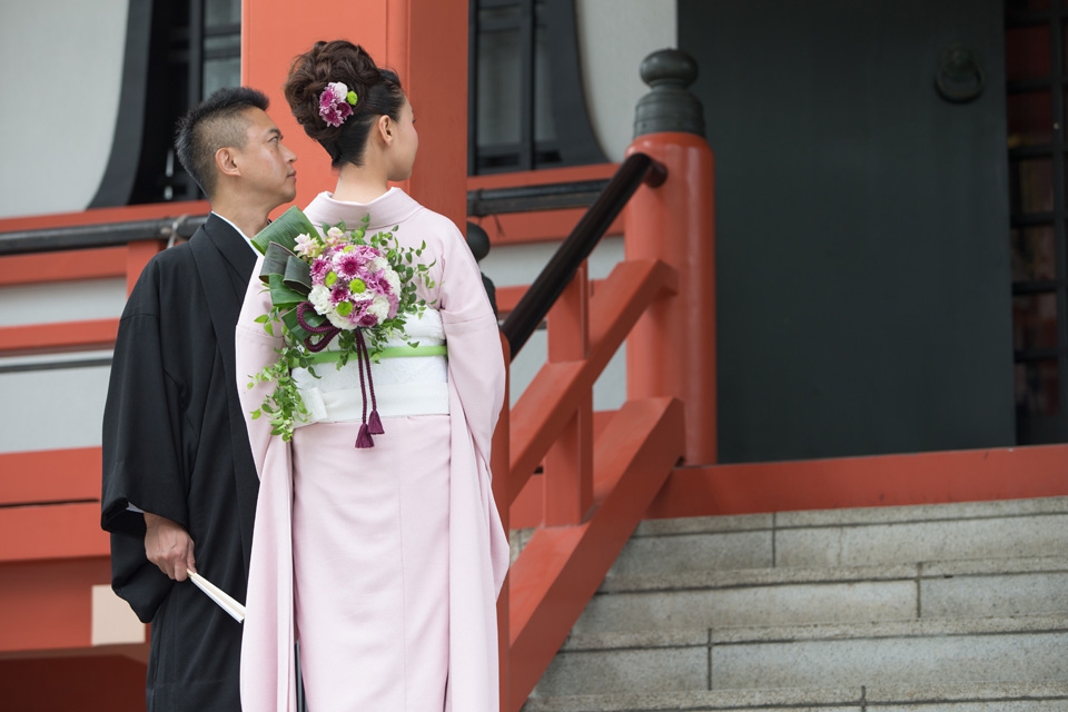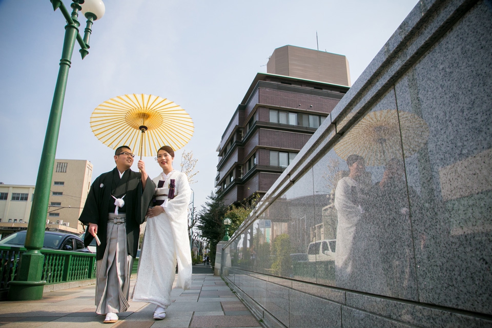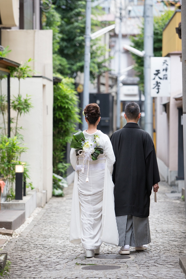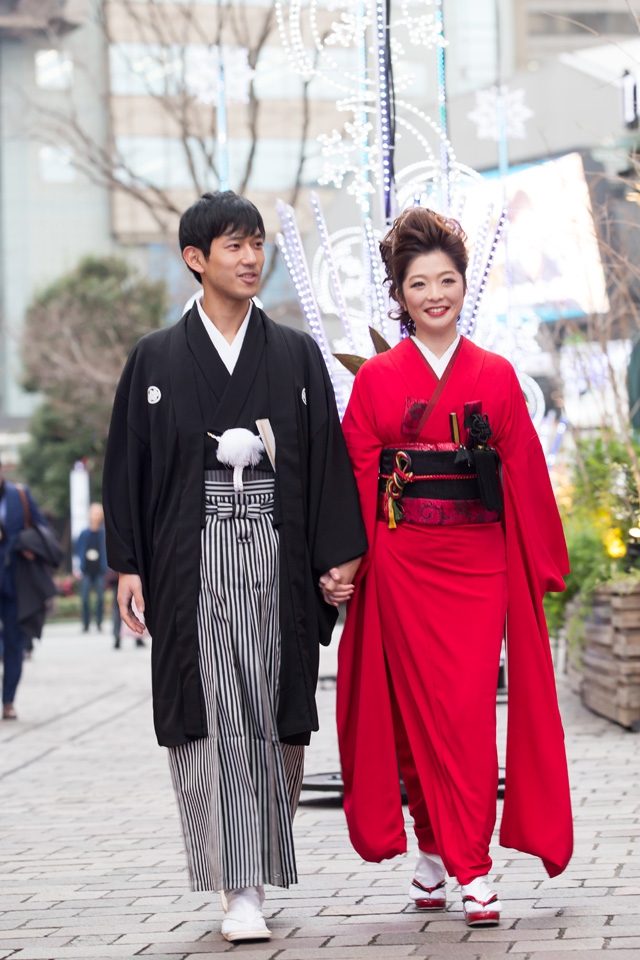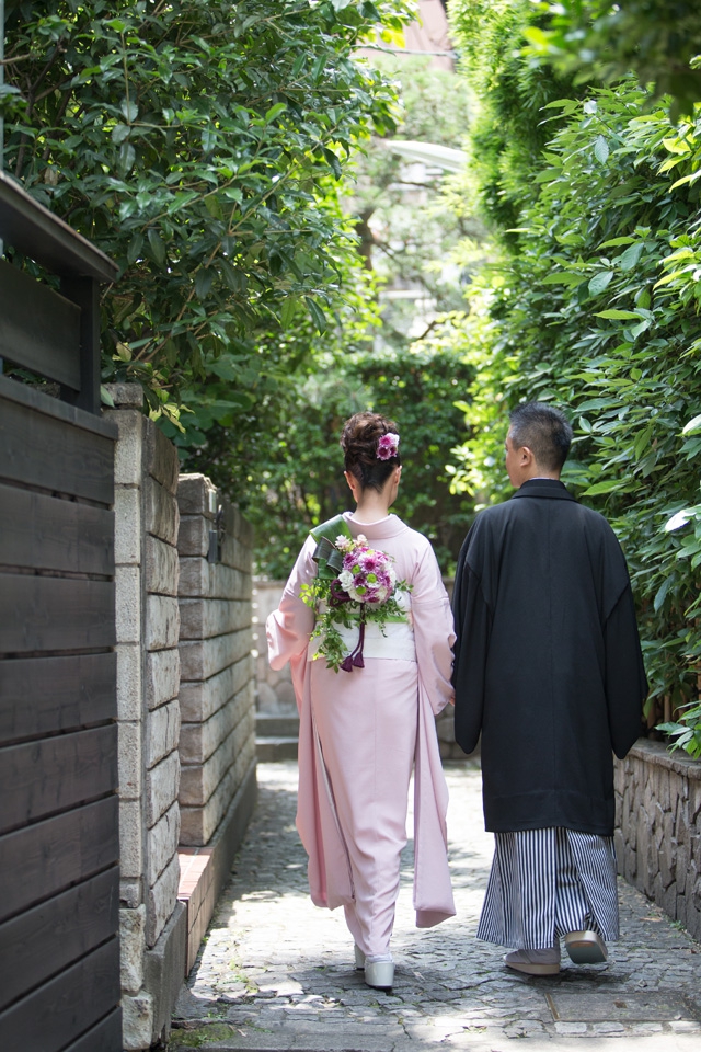 お着物のお色は、新郎新婦様ともに60色(無地)からお好きな色をお選びいただき、お仕立ていたしま